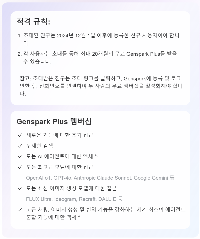 현재 젠스파크PLUS를 무료로 이용할 수 있는 친구초대 이벤트를 진행하고 있으니 관심 있으시면