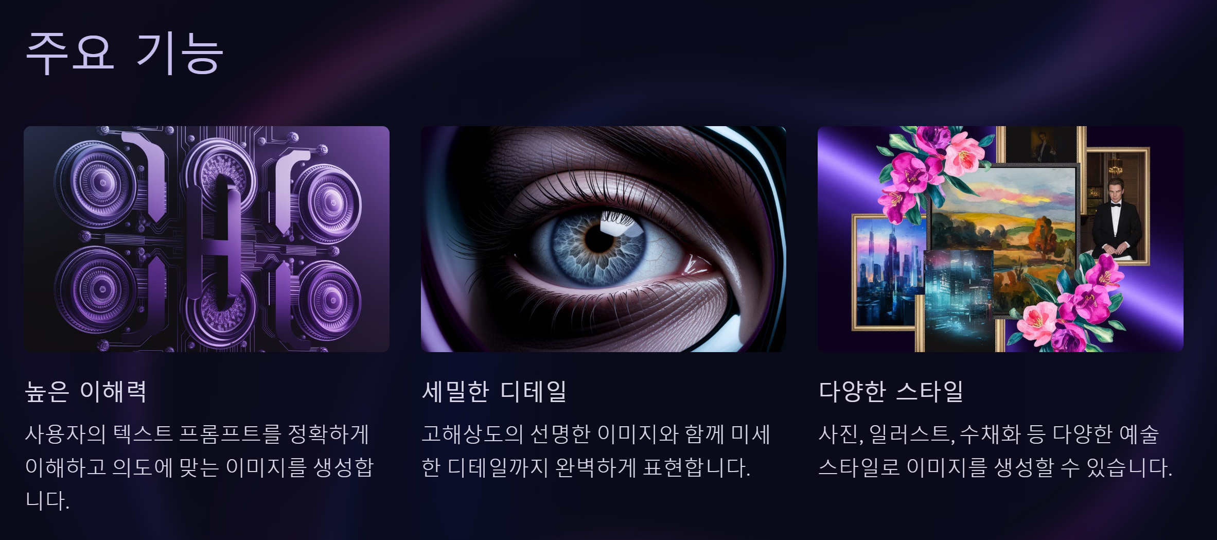 - 높은 이해력: 복잡한 자연어 설명도 정확하게 이해하여 이미지를 생성합니다.